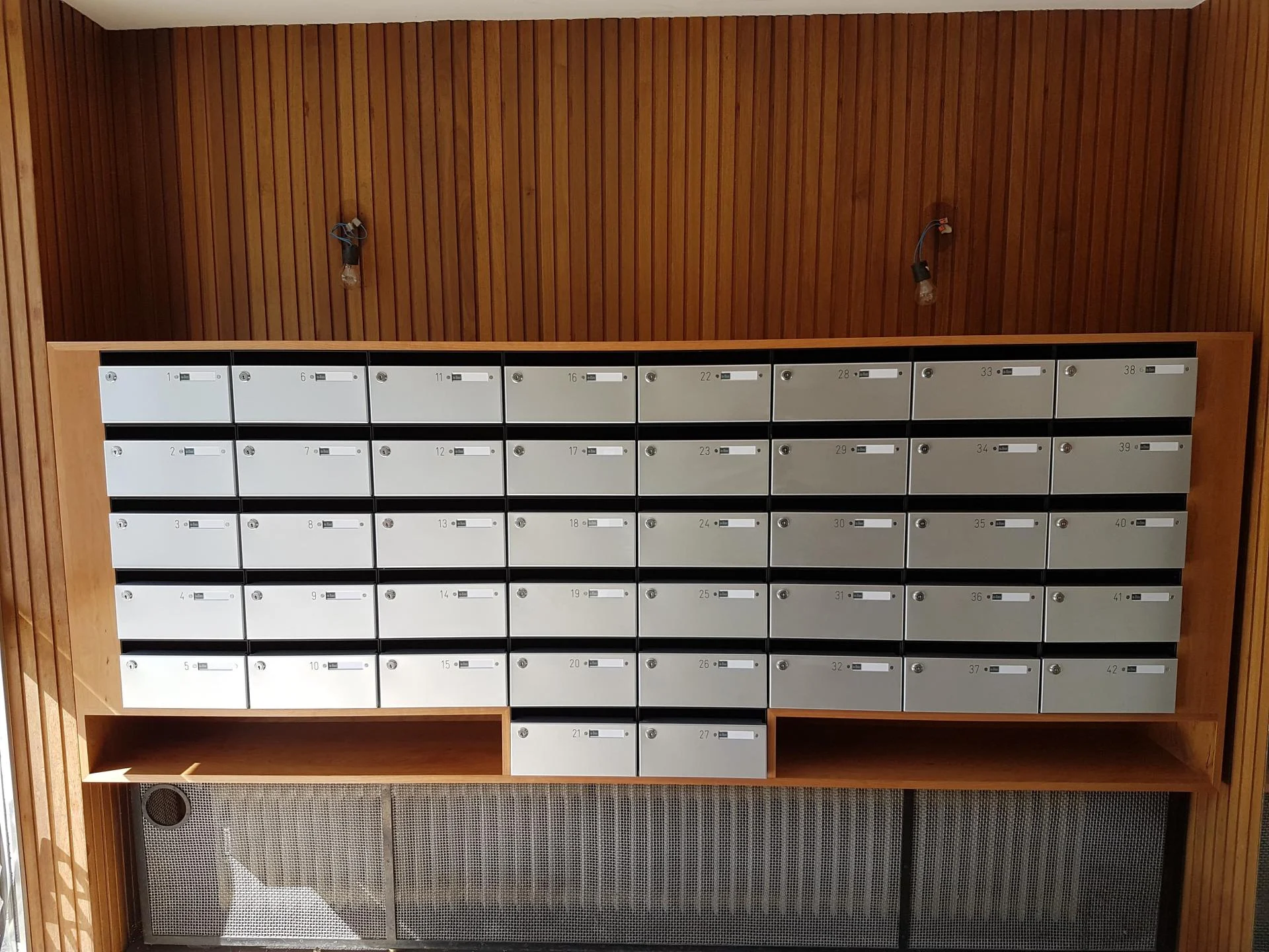 Bij een beperkte beschikbare ruimte in de inkomhall, kan u kiezen voor onze kasten met een diepte van 230 mm; zelfs met deze kleinere afmetingen worden uw courante poststukken nog steeds kreukvrij en veilig bezorgd.